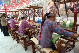 陜西咸陽一家土布工藝公司在“西洽會”上展示土織布制作過程,以期吸引客商,尋覓大市場。 本報記者:焦衛(wèi)平