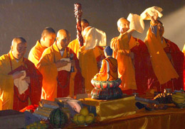 5月23日,眾多高僧在為《禪宗少林·音樂大典》祈福。