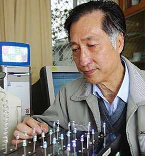 佛山市國(guó)星光電科技公司通過(guò)與蘇鏘院士領(lǐng)銜的工作室合作,其成果已成功地在廣東省關(guān)鍵領(lǐng)域重點(diǎn)突破項(xiàng)目和省重大科技項(xiàng)目招標(biāo)中中標(biāo),并開(kāi)展了佛山市第一個(gè)國(guó)家“863”計(jì)劃引導(dǎo)項(xiàng)目——大功率白光LED器件產(chǎn)業(yè)化關(guān)鍵技術(shù)研究與開(kāi)發(fā)。圖為蘇鏘院士在實(shí)驗(yàn)室。