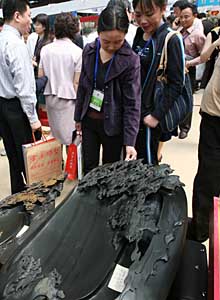 5月18日,幾名參會人員在徽商展會上欣賞歙硯。新華社發(fā)(潘成