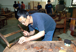 據(jù)龍順成中式家具廠廠長(zhǎng)寇穎躍介紹,龍順成是享譽(yù)京城的百年老字號(hào),始創(chuàng)于1862年,是與“蘇作”、“廣作”齊名的“京作”硬木家具的代表品牌,在當(dāng)時(shí)的家具行中被稱為“官窯”,是為清代宮廷制作家具的機(jī)構(gòu)。 作為“京作”家具風(fēng)格的代表,龍順成的獨(dú)特制作技藝傳承了明清造型、榫卯結(jié)構(gòu)和燙蠟工藝等三項(xiàng)特征,使龍順成家具不僅具有實(shí)用價(jià)值,而且具有很高的藝術(shù)性與收藏價(jià)值。 古舊家具修復(fù)也被稱為“舊活”。價(jià)值,創(chuàng)新老字號(hào)經(jīng)營(yíng)之路”的“我們以前一年只能修復(fù)幾十件‘舊活’,現(xiàn)在是認(rèn)認(rèn)真真地把這件事情當(dāng)作一項(xiàng)工程來(lái)做。我們的目標(biāo)是在一年內(nèi)修復(fù)200件以上具有收藏價(jià)值的古舊家具,讓具有古典文化元素的家具散件變成反映歷史原貌、蘊(yùn)藏文化內(nèi)涵的藝術(shù)品和收藏品!笨芊f躍這樣表述龍順成的古舊家具修復(fù)計(jì)劃。 “由于歷史的原因,龍順成收集了上萬(wàn)件各種古典家具配件,堆滿了幾個(gè)倉(cāng)庫(kù),有的不得不放在室外經(jīng)受風(fēng)吹日曬,但這些部件由于是上好的硬木材質(zhì),縱然經(jīng)過(guò)上百年的風(fēng)雨侵蝕,仍然不腐爛、不變形,這么多好東西為什么不能綜合利用,變廢為寶呢?這種想法激發(fā)了我們下決心啟動(dòng)古舊家具修復(fù)工程。” 寇穎躍表示,當(dāng)初在收集這些配件時(shí)曾做過(guò)各種分類,有的配件是很有來(lái)頭的家具的一部分,有的具有相當(dāng)深厚的文化內(nèi)涵。據(jù)專家估算,單這些散件的價(jià)值就不低于一億元,是真正的“寶貝”,但“不把它們復(fù)原到整體的家具上去,價(jià)值就得不到表現(xiàn),只有把它們修復(fù)成一件件實(shí)實(shí)在在的家具,才能體現(xiàn)出其真正的價(jià)值。”