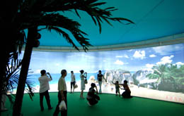 風(fēng)光旖旎的海南吸引了越來越多的旅游地產(chǎn)投資者。圖為6月11日,在第四屆泛珠三角區(qū)域合作與發(fā)展論壇暨經(jīng)貿(mào)洽談會上,一些觀展游客在海南省展廳內(nèi)“天涯海角”巨幅照片前拍照。本報記者:趙眾志