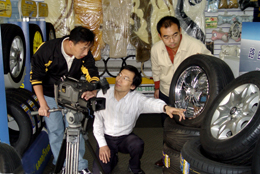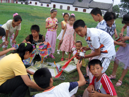 圖為科普片拍攝現(xiàn)場。上圖為《給汽車穿上合腳的鞋》攝制組在討論拍攝技巧;下圖為《鳶都二月風(fēng)箏舞》攝制組在楊家埠古放飛場指導(dǎo)孩子們進行放飛準(zhǔn)備拍攝。潘偉平