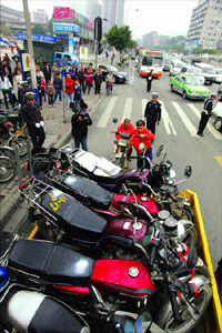 (本報(bào)資料照片) | 從今年1月1日起,廣州市正式禁止摩托車(簡(jiǎn)稱“禁摩”)在市內(nèi)行駛。經(jīng)過五個(gè)多月的實(shí)踐,廣州市有關(guān)部門沒有接到一宗關(guān)于“禁摩”的信訪或上訪,“禁摩”已實(shí)現(xiàn)平穩(wěn)過渡。 在廣州正式“禁摩”前,曾有不少專家學(xué)者擔(dān)心“禁摩”會(huì)帶來(lái)一系列社會(huì)問題。之所以實(shí)現(xiàn)了平穩(wěn)過渡,是因?yàn)閺V州采取了一個(gè)長(zhǎng)達(dá)10年的漸進(jìn)式“禁摩”之路。從1998年到2007年,經(jīng)過廣泛地聽取民意、縝密地論證到科學(xué)地決策,廣州市“平靜”地化解了各種社會(huì)矛盾。