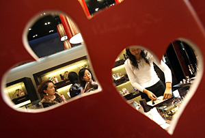 在北京的一家首飾店內(nèi),幾位女士正在挑選鉆石飾品。本報記者 李俊東