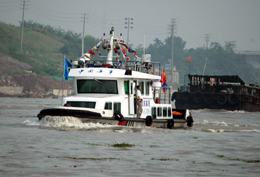 7月11日,一艘海巡艇在京杭運(yùn)河揚(yáng)州汪家窯水域巡航。受淮河泄洪影響,京杭運(yùn)河揚(yáng)州段從7月11日起全線實施汛期水上交通管制,揚(yáng)州地方海事部門已組織海巡艇及防汛物資進(jìn)入現(xiàn)場,對汪家窯等重點水域?qū)嵭腥旌蜓埠,確保汛期過往船舶的航行安全。