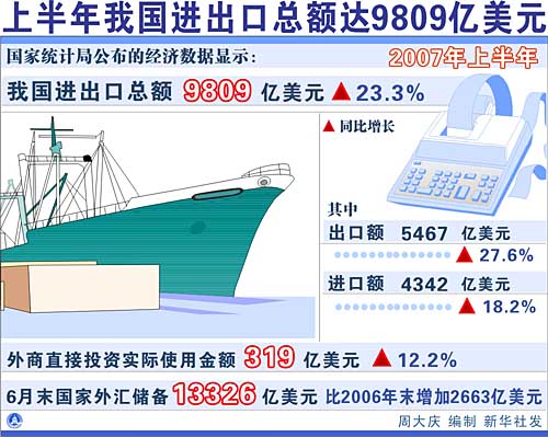 上半年我國進出口總額達9809億美元[圖表]