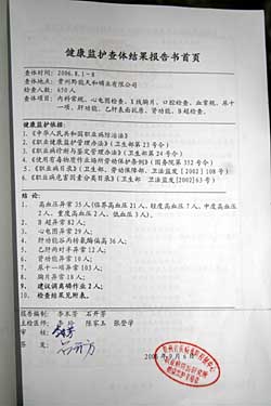 貴州黔能天和磷業(yè)有限公司是目前貴陽市生產(chǎn)規(guī)模最大的一家黃磷生產(chǎn)企業(yè)。檢查組到這家公司檢查時(shí),發(fā)現(xiàn)這家公司生產(chǎn)車間不僅相關(guān)職業(yè)衛(wèi)生警示標(biāo)志不全,在各種有毒有害氣體最集中的爐臺(tái)上,生產(chǎn)工人也是“敞開式”作業(yè),有的戴個(gè)紗布口罩,有的連紗布口罩也不戴,說:“習(xí)慣了! 據(jù)了解,黃磷不僅本身有劇毒,生產(chǎn)過程中產(chǎn)生的氟化氫、磷化氫、一氧化碳等也是有毒有害氣體。由于沒有相關(guān)監(jiān)測數(shù)據(jù),檢查組同志一下說不出這家公司作業(yè)場所職業(yè)危害究竟有多嚴(yán)重,現(xiàn)場陪同檢查的公司有關(guān)負(fù)責(zé)人則一再說,公司職業(yè)衛(wèi)生安全“沒問題”,工人都按有關(guān)規(guī)定進(jìn)行了體檢。但隨后公司提供給檢查組的職工體檢報(bào)告,卻讓人觸目驚心。 該公司職工體檢報(bào)告顯示,2000年該公司共有841名職工參加體檢,體檢異常316人,占38.82%。體檢異常的工人中,慢性磷中毒、肺結(jié)核、肺部感染、塵肺、心臟異常、乙肝兩對半異常、白細(xì)胞偏低、高血壓等病例總計(jì)達(dá)168例。 公司2003年度和2006年度職工體檢報(bào)告同樣讓人觸目驚心。2003年這家公司707名職工參加體檢,其中接觸有毒有害物質(zhì)的職工625名,體檢檢出職工慢性磷中毒、心電圖異常等病例346例;2006年650名職工體檢,檢出胸片異常、腎功能異常等病例325例。 更讓檢查組意外的是,公司對這些體檢異常的工人,除給個(gè)別情況比較嚴(yán)重的工人換崗以外,并沒有采取任何措施;在作業(yè)場所職業(yè)危害的防護(hù)上,這家公司2000年以來六七年時(shí)間里,也未采取過任何有效改進(jìn)措施。 而據(jù)當(dāng)?shù)匕脖O(jiān)局的同志介紹,開陽縣8家黃磷生產(chǎn)企業(yè)中,黔能天和公司在職業(yè)衛(wèi)生安全方面還算是好的,另外7家仍在生產(chǎn)的企業(yè),有6家從未給一線作業(yè)人員進(jìn)行過職業(yè)健康體檢,且生產(chǎn)條件也比天和公司落后。