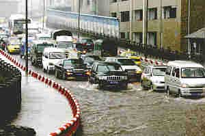 08奧運(yùn)已經(jīng)迫近,北京的各項(xiàng)應(yīng)急準(zhǔn)備都做好了嗎?遺憾的是不期而至的8月1日、6日兩場(chǎng)大雨,暴露了京城市政交通的“短板”——在大雨中北三環(huán)通往亞運(yùn)村、奧運(yùn)場(chǎng)館的主干道安華橋下成為一片汪洋,水深處達(dá)1.7米,交通癱瘓4小時(shí)之久,很多遭遇此難的市民談起當(dāng)時(shí)的情景還耿耿于懷。人們不禁要問(wèn),假如明天就是奧運(yùn)開幕式,北京的市政應(yīng)急措施豈不是交了張白卷。[詳情] |