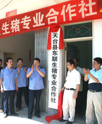 浙江天臺縣工商局工作人員為天臺縣東聯(lián)生豬專業(yè)合作社掛牌。(本報資料照片) | 記者在長三角各地采訪農(nóng)民專業(yè)合作社時,上海市農(nóng)委人士介紹的一個小細節(jié)讓人很受啟發(fā):過去農(nóng)民對外簽合同,類似“一打”、“一捆”之類的“模糊”用詞常常出現(xiàn),“弄得不好就起爭議”。現(xiàn)在合作社的合同越來越規(guī)范,政府提供的專業(yè)培訓(xùn)也說得清楚,要選擇“噸”這樣的精確單位。 “噸”、“捆”之別可以看出長三角農(nóng)民專業(yè)合作社“法人意識”正在不斷增強。特別是今年7月1日起《中華人民共和國農(nóng)民專業(yè)合作社法》正式實施,合作社的“法人地位”有法可依,成為國內(nèi)農(nóng)產(chǎn)品市場中的一大新興主體力量。