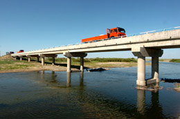 位于內(nèi)蒙古新巴爾虎左旗的額布都格口岸是我國唯一向南的對蒙口岸。2005年11月,跨越中蒙界河哈拉哈河,全長164.9米額布都格——巴彥呼舒口岸大橋竣工通關(guān),成為第一座中蒙界河橋。 新華社記者:任軍川