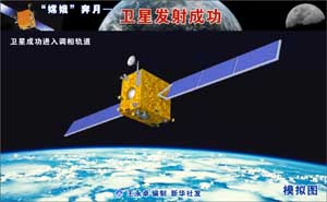 嫦娥一號衛(wèi)星成功升空。新華社記者 李剛