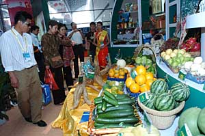 第四屆中國-東盟博覽會上,參會人員在關(guān)注中國的農(nóng)產(chǎn)品。新華社記者 劉廣銘