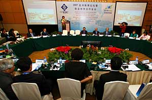 11月9日,2007歐亞經(jīng)濟(jì)論壇代表在教育合作會(huì)議上發(fā)言。當(dāng)日,2007歐亞經(jīng)濟(jì)論壇在西安舉行能源、旅游、教育、金融領(lǐng)域合作會(huì)議和各國(guó)投資環(huán)境推介會(huì)議,架起歐亞各國(guó)相互合作、共同發(fā)展的橋梁。新華社發(fā)(侯智
