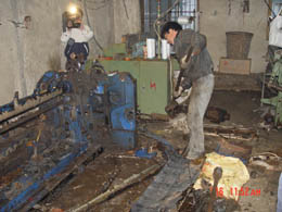 在長(zhǎng)興開(kāi)展的污染行業(yè)整治中,工人正在拆除污染嚴(yán)重的噴水納機(jī)。常宣
