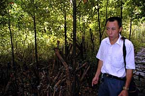 三峽珍稀植物園創(chuàng)建者向秀發(fā)在去年旱死的一片野生枸杞樹前痛心不已。這個(gè)植物園自2002年建設(shè)以來(lái),就因體制不順、無(wú)主管部門而缺乏資金來(lái)源。今年6月,已負(fù)債30萬(wàn)元的向秀發(fā)無(wú)力支撐,被迫關(guān)閉植物園,園內(nèi)珍稀植物面臨各種災(zāi)害威脅。本報(bào)記者