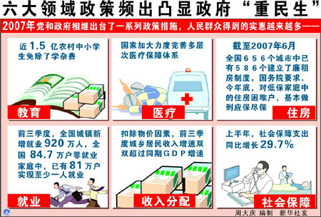 在農(nóng)村基層,廣大農(nóng)民對國家實(shí)施的一系列惠農(nóng)政策交口稱贊。江西省豐城市團(tuán)結(jié)村村民晏春水說:“現(xiàn)在黨的政策好啊,不僅種田、種糧不要繳稅,就連養(yǎng)豬也有補(bǔ)貼,真是幾輩子也不敢想的事!” 民生工程如“潤滑劑”,融洽著黨群干群關(guān)系。四川省委組織部部長劉中柏介紹說:“如今農(nóng)民負(fù)擔(dān)減下來了,地方政府不用擔(dān)心以往農(nóng)民與政府對立狀況,也不用再為農(nóng)民負(fù)擔(dān)過重引發(fā)的社會穩(wěn)定問題擔(dān)驚受怕,黨群干群關(guān)系緩和了。”目前,起始于農(nóng)村的“民生工程”激起的漣漪正在不斷地在向城市擴(kuò)展,入學(xué)難、就醫(yī)難、買房難、出行難等關(guān)系群眾衣食住行的老大難問題逐步得到緩解,困難群體更多地沐浴到公共財政“陽光”。 劉中柏說,“民生工程”的實(shí)施也悄然地促使基層干部改善工作作風(fēng),轉(zhuǎn)變政府職能。如今,許多干部開始主動深入基層、深入農(nóng)村、社區(qū),傾聽群眾呼聲,了解群眾困難,有針對性解決他們的實(shí)際困難,為群眾辦好事、辦實(shí)事。聯(lián)系群眾、服務(wù)群眾在基層蔚然成風(fēng)。一些群眾伸出大拇指稱贊:“五、六十年代的黨員干部優(yōu)良作風(fēng)又回來了!” 江西省豐城市委書記冷新生告訴記者,為把民生工程落到實(shí)處,豐城市將城鄉(xiāng)低保、就業(yè)、農(nóng)村新型合作醫(yī)療等民生項(xiàng)目列為各級政府和部門考核的剛性指標(biāo),納入政府年度目標(biāo)予以考核,強(qiáng)調(diào)民生指標(biāo)不打任何折扣。僅2006年,豐城市財政用于民生工程的資金就達(dá)1億多元。今年,豐城市將新增財力向困難群眾傾斜,向農(nóng)村傾斜,向基層傾斜,向社會事業(yè)傾斜,全年安排財政資金3.5億元改善民生,把抽象的“幸福指數(shù)”落實(shí)到實(shí)實(shí)在在的群眾生產(chǎn)生活中。 冷新生說,政府出資金,百姓得實(shí)惠,民生工程給豐城市政府形象和干群關(guān)系帶來了顯著變化。