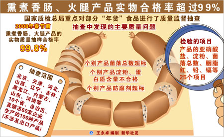熏煮香腸、火腿產(chǎn)品實(shí)物合格率超過(guò)99%[圖]