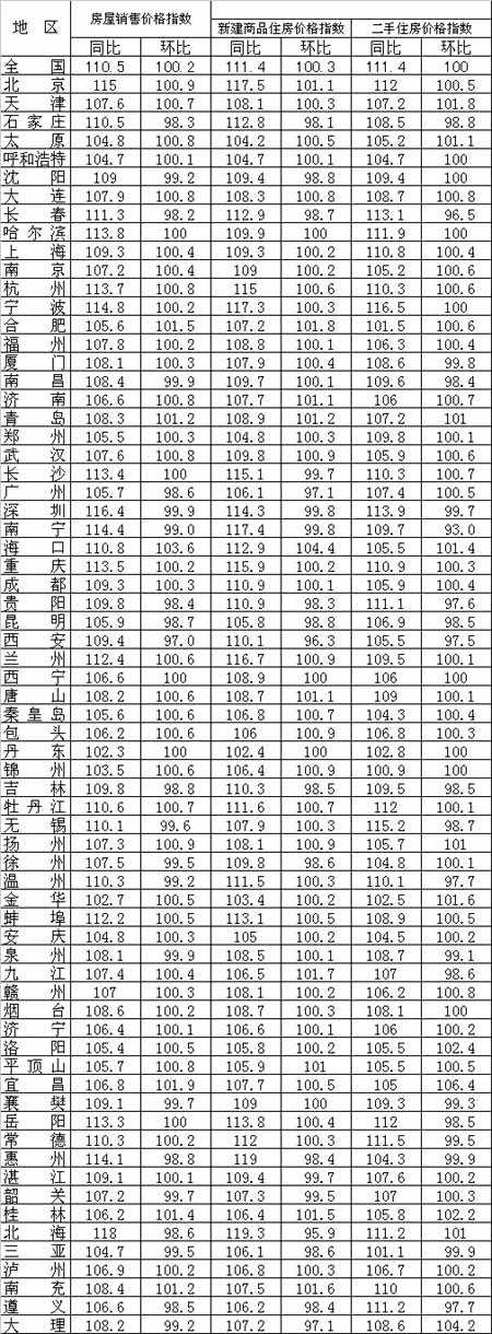 11月70個(gè)大中城市房屋銷售價(jià)漲10.5%