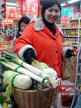 蘇州一家大型超市推出了環(huán)保藤編籃。顧客只要交10元錢押金,就可以將購(gòu)買的商品用藤編籃帶回家。顧客可憑證退回押金。新華社發(fā)