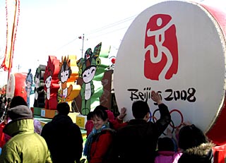 “盛世迎奧運(yùn),和諧慶新春”、“奧運(yùn)北京中國(guó)年,祥瑞福娃五福全”。鼠年春節(jié),凝聚著中國(guó)傳統(tǒng)春節(jié)文化的“奧運(yùn)春聯(lián)”,遍及北京的住宅小區(qū)、胡同和四合院。在北京西城區(qū)柳蔭街社區(qū),居民們紛紛將自編自寫(xiě)的以“迎奧運(yùn)慶新春”為主題的春聯(lián)張貼在各家門(mén)前。一位70多歲的社區(qū)老人情不自禁地說(shuō):“奧運(yùn)是中國(guó)人的百年夢(mèng)想。貼幅‘奧運(yùn)春聯(lián)’就是要表達(dá)一下內(nèi)心的喜悅心情。” 春節(jié)廟會(huì)也是北京傳統(tǒng)的春節(jié)文化活動(dòng),每天吸引著數(shù)以百萬(wàn)計(jì)的游客。與以往不同的是,今年春節(jié)的廟會(huì)大都與奧運(yùn)有關(guān)。龍?zhí)稄R會(huì)主打“奧運(yùn)牌”,引進(jìn)奧運(yùn)體驗(yàn)場(chǎng)巡展活動(dòng),市民可親身體驗(yàn)無(wú)水游泳、多媒體射箭、數(shù)碼感應(yīng)拳擊、模擬劃艇等28個(gè)奧運(yùn)會(huì)體育項(xiàng)目的魅力。地壇廟會(huì)設(shè)立了“奧運(yùn)日”,蓮花池廟會(huì)推出了以“鼠歲奧運(yùn)燃圣火”為主題的“奧運(yùn)項(xiàng)目金牌猜猜看”活動(dòng),中華世紀(jì)壇、世界花卉大觀園也分別推出了奧運(yùn)文化廟會(huì)和奧運(yùn)吉祥物盛裝大游行活動(dòng)。大觀園廟會(huì)還推出了《探春歸省迎奧運(yùn)》的舞臺(tái)情景劇。 手機(jī)短信依然是京城春節(jié)最為流行的拜年方式,僅除夕零點(diǎn)鐘聲敲響之際,北京移動(dòng)用戶每秒鐘短信發(fā)送量就接近兩萬(wàn)條。今年春節(jié),北京移動(dòng)短信業(yè)務(wù)量達(dá)五億條,北京聯(lián)通的短信發(fā)送量也達(dá)一億條。這些拜年短信中,涉及奧運(yùn)的內(nèi)容占有一定比重。春節(jié)前,搜狐等19家網(wǎng)站聯(lián)合舉辦了“原創(chuàng)新春祝福短信大賽”,在由500多萬(wàn)名網(wǎng)民投票選出的20條最受歡迎的短信中,與奧運(yùn)有關(guān)的就占了14條!皧W運(yùn)帶動(dòng)國(guó)運(yùn)昌,鳥(niǎo)巢屹立展風(fēng)光。但見(jiàn)嫦娥奔月去,晶瑩剔透水立方……”這條被廣為轉(zhuǎn)發(fā)的祝福短信,由于代表了北京人的心聲,名列最受歡迎的短信之首。 春節(jié)期間,與奧運(yùn)有關(guān)的商品熱銷(xiāo)。在科貿(mào)、鼎好、海龍等京城主要電子產(chǎn)品商城,一種可通過(guò)手機(jī)等收看奧運(yùn)賽事直播、具有DAB功能的數(shù)碼產(chǎn)品,一推出就備受消費(fèi)者的青睞。在各奧運(yùn)特許商品專(zhuān)營(yíng)店里,福娃貼畫(huà)、福娃圓珠筆、奧運(yùn)金幣、瓷花瓶等奧運(yùn)商品擺滿貨架。一位銷(xiāo)售人員說(shuō),送給孩子的“奧運(yùn)寶寶”金銀鎖、具有收藏價(jià)值的奧運(yùn)紀(jì)念幣和貴金屬制品,以及經(jīng)典的福娃鑰匙扣、小掛件等,已成為今年春節(jié)備受推崇的新春禮物。其中,奧運(yùn)吉祥物五福娃更因“五福臨門(mén)”的寓意,在各類(lèi)商品中最為搶手。