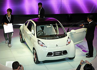 日本汽車銷售協(xié)會聯(lián)合會新任會長天野洋一近日表示,2007財年日本國內(nèi)新車銷售有可能出現(xiàn)五年以來的首次增長。他認為,高油價使一批消費者更換小車,這對汽車銷售有一定的促進作用。圖為在東京車展上,一輛日本三菱汽車公司的iMiEV
