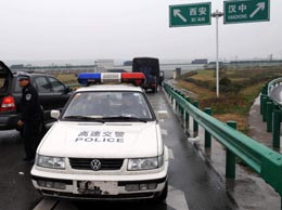 3月12日,一輛“高速交警”執(zhí)法車停在西(安)漢(中)高速公路龍亭段正檢查來往車輛。該車不僅沒有車牌,還停在高速路的逆行交叉道上,給執(zhí)法者和來往車輛造成嚴(yán)重的安全隱患。新華社記者:陶明