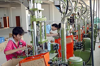 一家南寧的臺資企業(yè)工人在操作機器。新華社記者 張周來