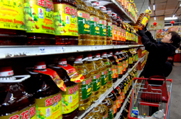 前不久沈陽市食用油價格開始下調(diào)。一位顧客在沈陽大東副食商場選購食用油。新華社記者:謝環(huán)馳 攝 |