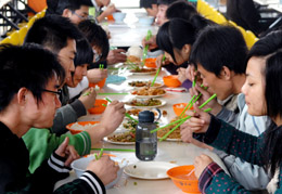 高校食堂力!捌絻r飯菜”。寧夏大學(xué)幾名學(xué)生正在第三學(xué)生食堂用餐。新華社記者:李紫恒