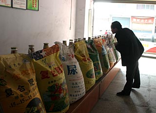 去年底以來,湖北農(nóng)村市場化肥價格大幅上漲。圖為一位物價管理人員在湖北監(jiān)利縣一農(nóng)資配送點查看化肥市場價格情況。新華社記者