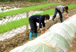 江西今年糧食綜合直補(bǔ)款達(dá)27.9億。4月22日,南昌市新建縣石埠鄉(xiāng)璜源村農(nóng)民在翻整水稻秧苗地膜。新華社發(fā)(周科