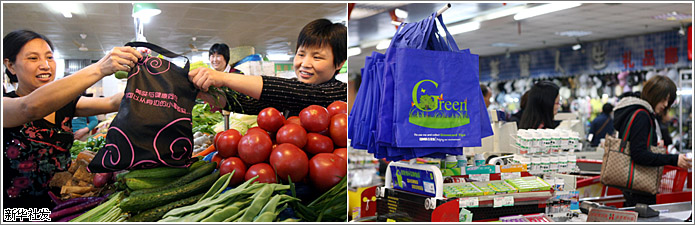 “限塑令”下各大超市環(huán)保袋花樣百出