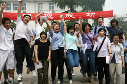 6月9日,山東省實(shí)驗(yàn)中學(xué)一批考生高考結(jié)束后在考場(chǎng)外歡呼雀躍。