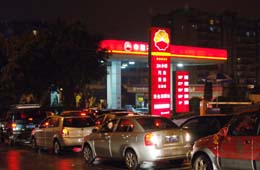一個(gè)中石油的加油站擠滿了想在油價(jià)上漲前加油的轎車(chē)。本報(bào)記者:劉潺