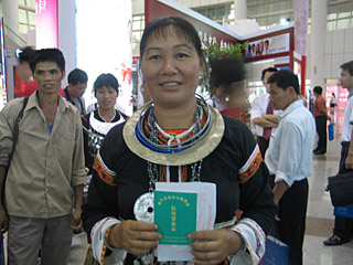 海南瓊中黎族苗族自治縣的農(nóng)村信用社給方道村黎族農(nóng)民王蘭香頒發(fā)《信用貸款證》,由于證件的封面是綠色的,被當(dāng)?shù)剞r(nóng)民俗稱(chēng)為“綠卡”。王蘭香大媽說(shuō),用“綠卡”貸款太方便了,我又貸款2000元買(mǎi)雞苗,今年要養(yǎng)更多的瓊中山雞。新華社發(fā)(李生東