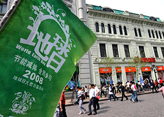 | 哈爾濱市以“節(jié)能減排,全民參與”為主題舉辦了一系列環(huán)保教育活動(dòng)。圖為市民從一面宣傳地球日的旗幟下走過(guò)。新華社記者 王建威