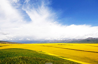 每年7月,地處祁連山麓的青海省門源回族自治縣60多萬畝油菜花競(jìng)相綻放,形成高原地區(qū)壯觀奇美的“百里油菜花!。新華社記者