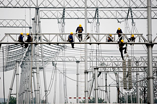 安徽省電力公司加快在建發(fā)電廠送出項目的建設速度,力爭早日并網(wǎng)發(fā)電,以緩解今夏華東電網(wǎng)用電缺口。圖為安徽省電力公司員工在淮北500千伏濉溪變電站進行接火作業(yè)。新華社發(fā)(王文