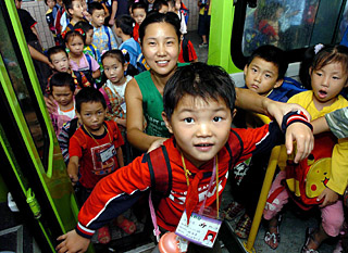 為緩解“用工荒”,晉江市開(kāi)辦了外來(lái)工子弟學(xué)校,學(xué)校還為離校較遠(yuǎn)的學(xué)生配備了接送專車。新華社記者 張國(guó)俊