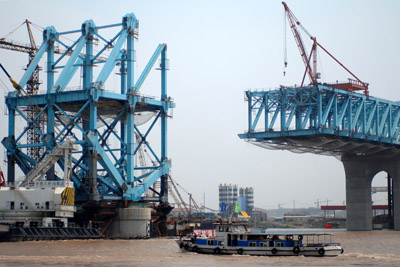 武漢天興洲長江大橋鋼梁架設(shè)穩(wěn)步推進(jìn)