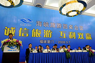 9月7日,海峽兩岸旅游界人士在第四屆海峽旅游圓桌會議上。新華社記者