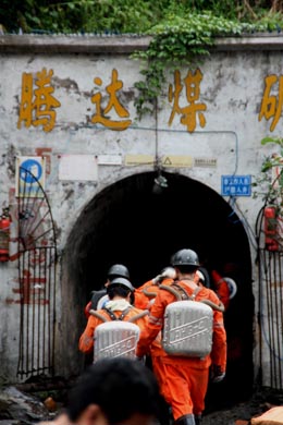云南彝良煤礦瓦斯爆炸事故導(dǎo)致5人死亡。9月10日,救援隊(duì)伍下井搜救被困人員。新華社發(fā)(張廣玉