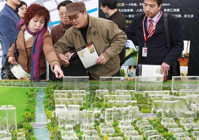 12月11日,第24屆中國上海房地產(chǎn)展示交易會在上海展覽中心開幕,盡管展會上開發(fā)商推出各種購房優(yōu)惠,但大部分消費者持理性的觀展態(tài)度。幾位市民正在關(guān)注一處綠化率較高的樓盤。新華社記者