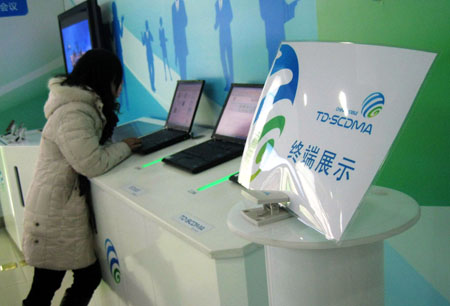 1月7日,消費者在北京一家中國移動展廳體驗3G手機的上網(wǎng)功能。新華社記者:邢廣利