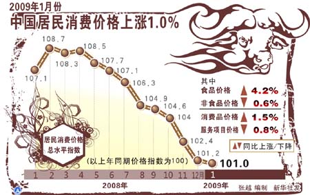 國家統(tǒng)計局10日公布,1月份我國居民消費(fèi)價格(CPI)同比上漲1%,漲幅比上月下降0.2個百分點,碰觸到通貨緊縮的預(yù)警線;工業(yè)品出廠價格(PPI)同比下降3.3%,降幅比上月擴(kuò)大2.2個百分點。數(shù)據(jù)顯示,當(dāng)前我國通貨緊縮的風(fēng)險正在增大。與之對應(yīng),市場預(yù)期央行未來將再次降息。