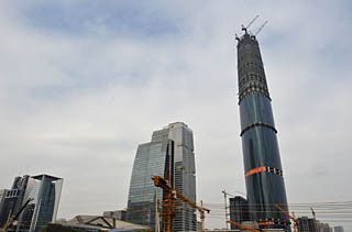 2008年12月31日,廣州國際金融中心(右)順利封頂,以437.5米的總高度成為華南第一高樓和中國第三高樓。新華社記者