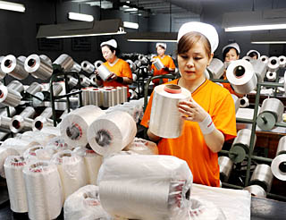 | 近年來,河北省保定天鵝化纖集團有限公司把技術創(chuàng)新作為老國企節(jié)能減排突破口,從細微技術環(huán)節(jié)中尋找節(jié)能減排切入點,在挑戰(zhàn)國外技術和設備中開辟節(jié)能減排新路徑,取得了良好的經(jīng)濟效益。圖為工人在保定天鵝化纖集團有限公司的質(zhì)檢車間工作。新華社資料照片 | “轉軌”已成為近年來中國經(jīng)濟社會發(fā)展的主題詞,為推動經(jīng)濟發(fā)展方式由粗放型向集約型轉軌中央進行了精心設計和布局,并出臺了一系列政策進行適時推動。如何處理好經(jīng)濟增長速度與轉變經(jīng)濟發(fā)展方式、提高經(jīng)濟增長質(zhì)量的關系既是一個多年前已提出的課題,也是當前國際金融危機背景下值得重視和深入研究的課題。 今年的政府工作報告明確提出,加快轉變發(fā)展方式,大力推進經(jīng)濟結構戰(zhàn)略性調(diào)整。這再次吹響了經(jīng)濟發(fā)展由“粗放型”向“集約型”轉變的號角。