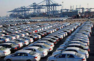 天津港一批等待裝船出口的天津一汽豐田轎車。新華社記者 劉海峰
