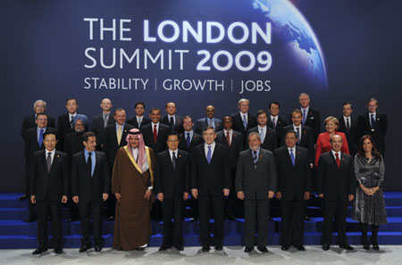 4月2日,國家主席胡錦濤在倫敦出席二十國集團領(lǐng)導(dǎo)人第二次金融峰會。這是與會各國領(lǐng)導(dǎo)人及有關(guān)國際組織負責(zé)人集體合影。新華社記者:李學(xué)仁 攝
